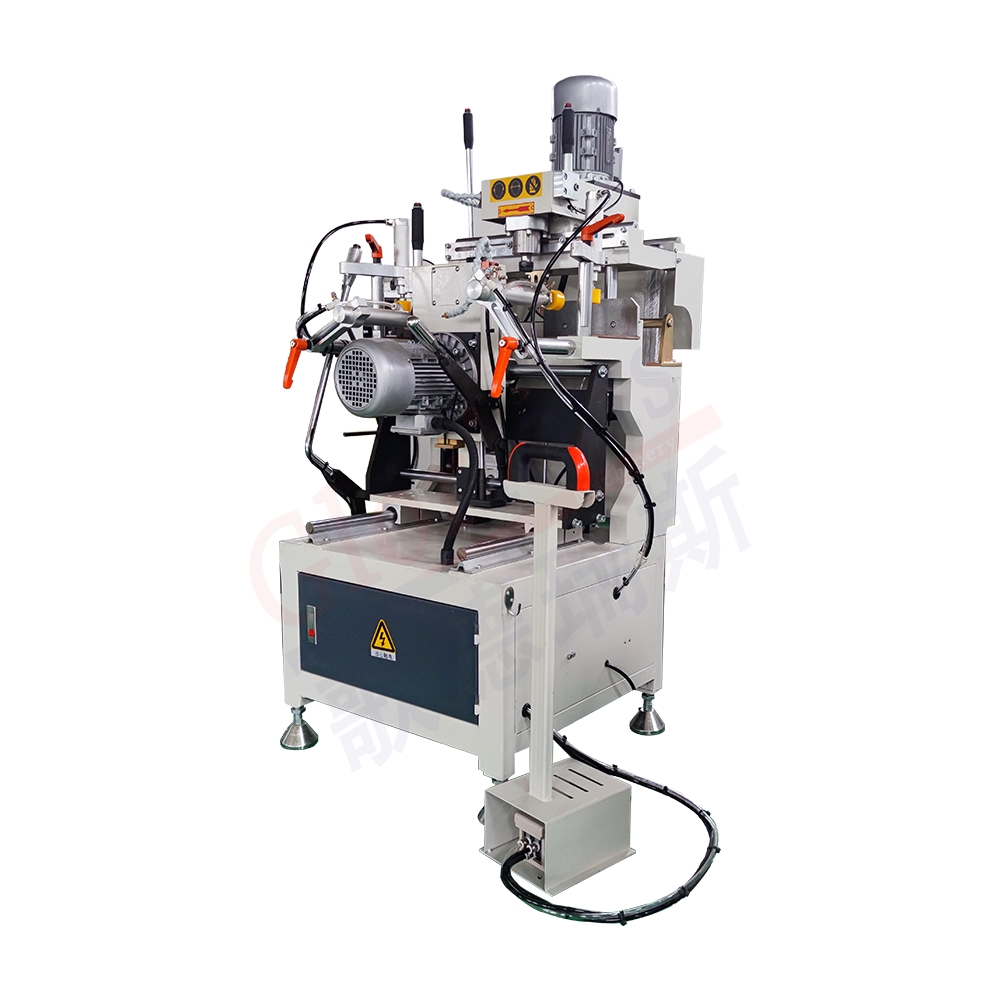 DZX02-100A鋁、塑門窗單軸仿形銑床主要用來加工鋁、塑型材門窗的各類型孔、榫槽、流水口等。由兩電動機分別帶動垂直和水平兩個方向的銑頭旋轉,裝夾零件后,可實現垂直或水平方向的連續加工。